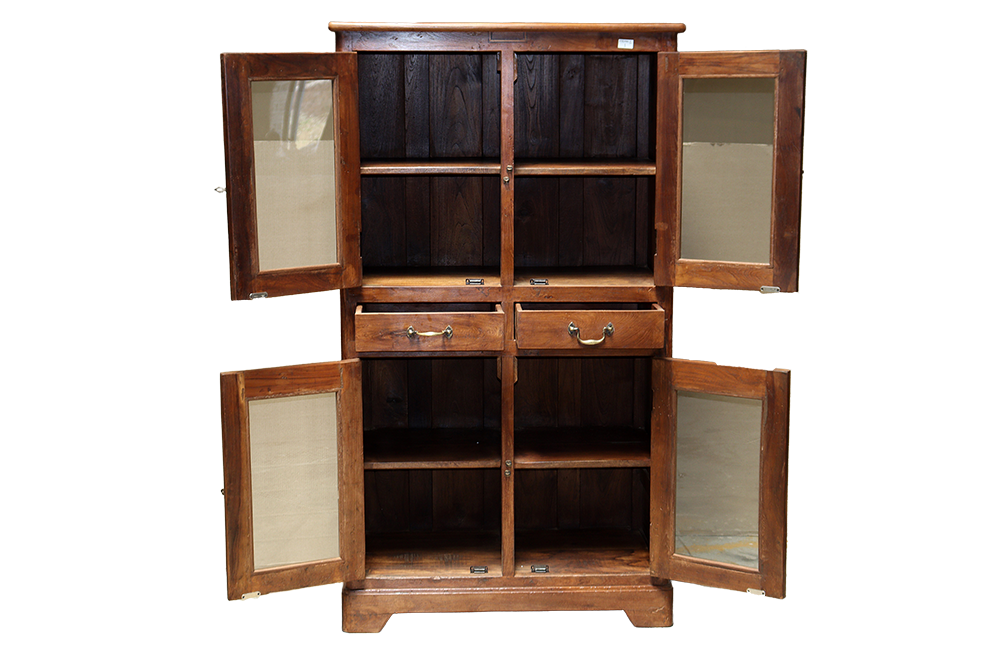 Vetrinetta originale antica fine '800 con 4 ante e 2 cassetti in legno di teak #3256IN2790 -18%