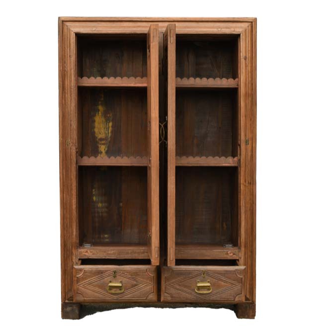 Armadio / Credenza alta indiana in legno di teak con 2 ante recuperate da una vecchia finestra intagliata #3001IN1890 -18%