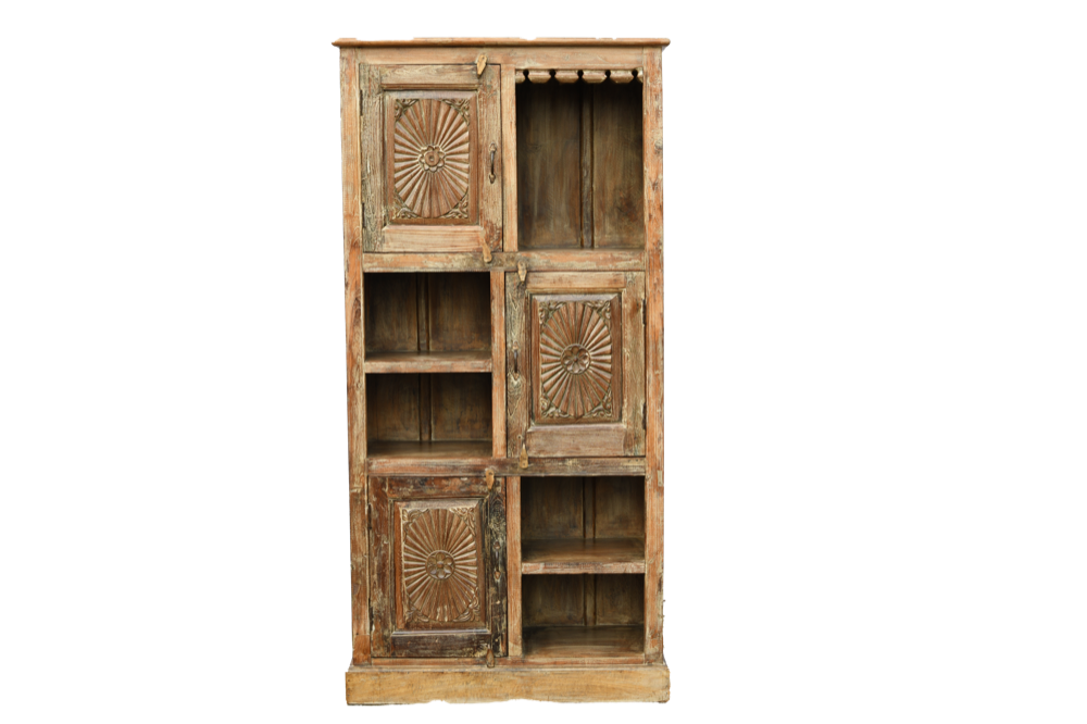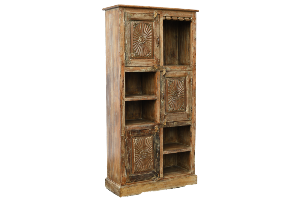 Libreria indiana in legno di teak realizzata con il recupero di vecchie cornici di antichi palazzi #3094IN2490 -18%