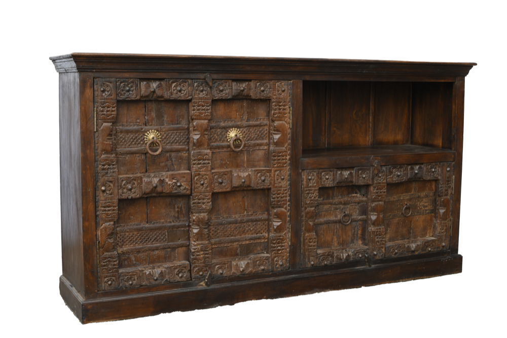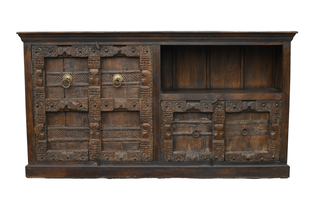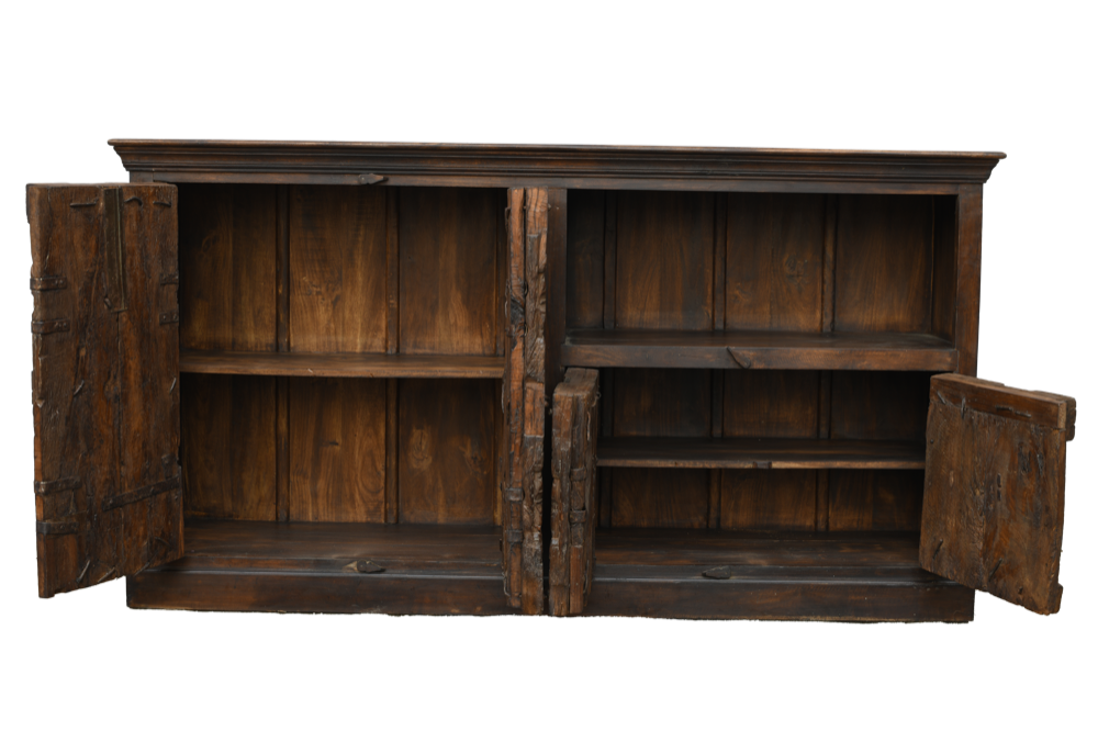 Credenza indiana in legno di teak con 4 ante realizzate con il recupero di vecchi portali tipo -18%