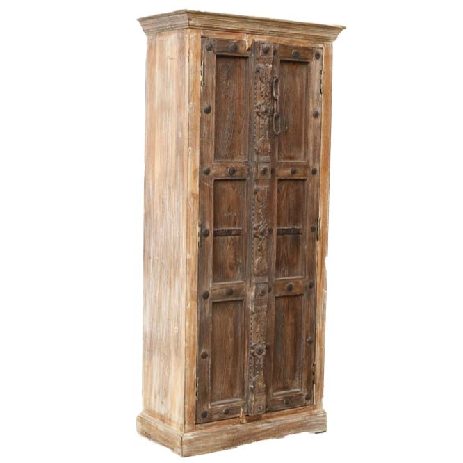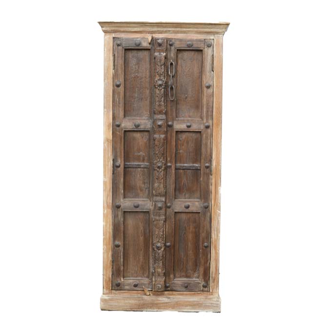 Armadio / Credenza alta indiana con 2 ante realizzate con il recupero di un portale antico in legno di teak e con inserti in ferro #3060IN2190 -18%