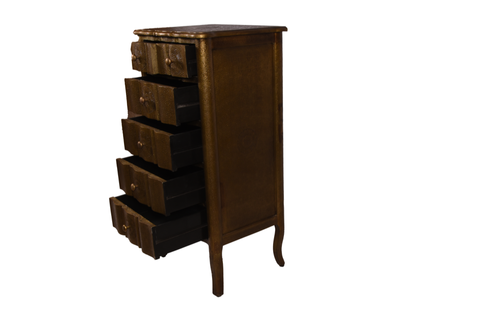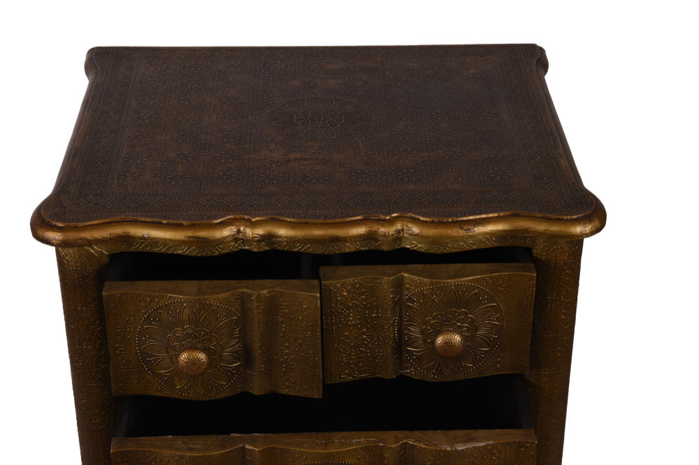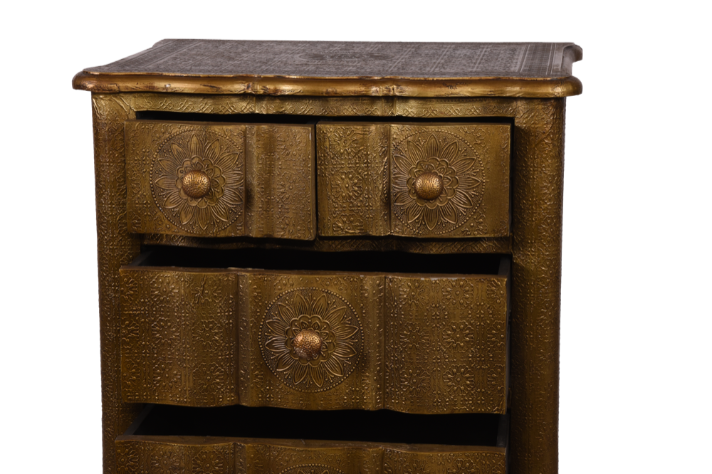 Cassettiera colonnina in legno rivestita in brass #3327IN1490