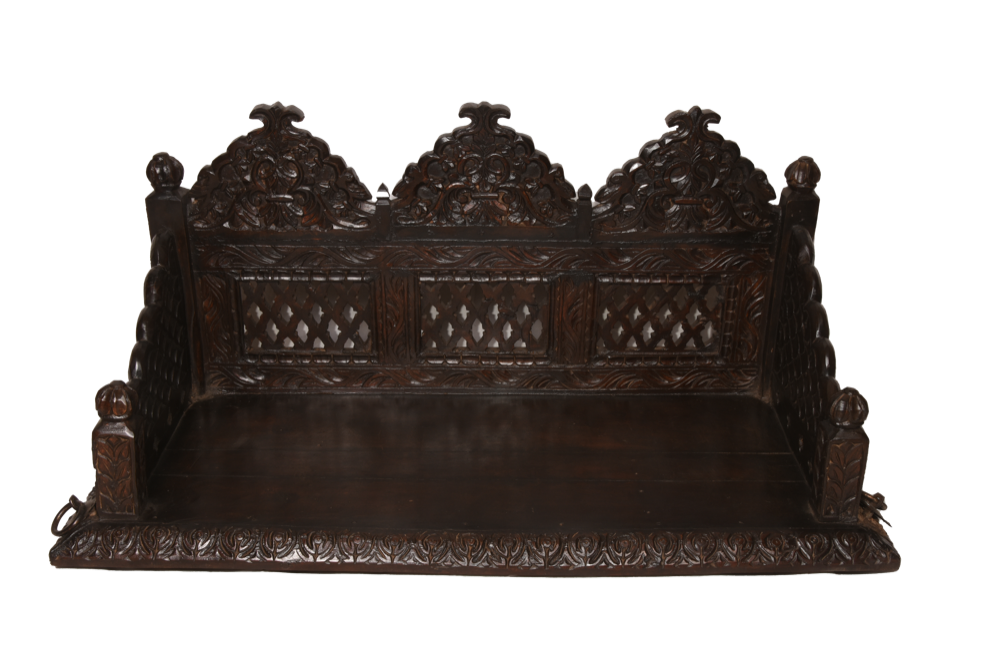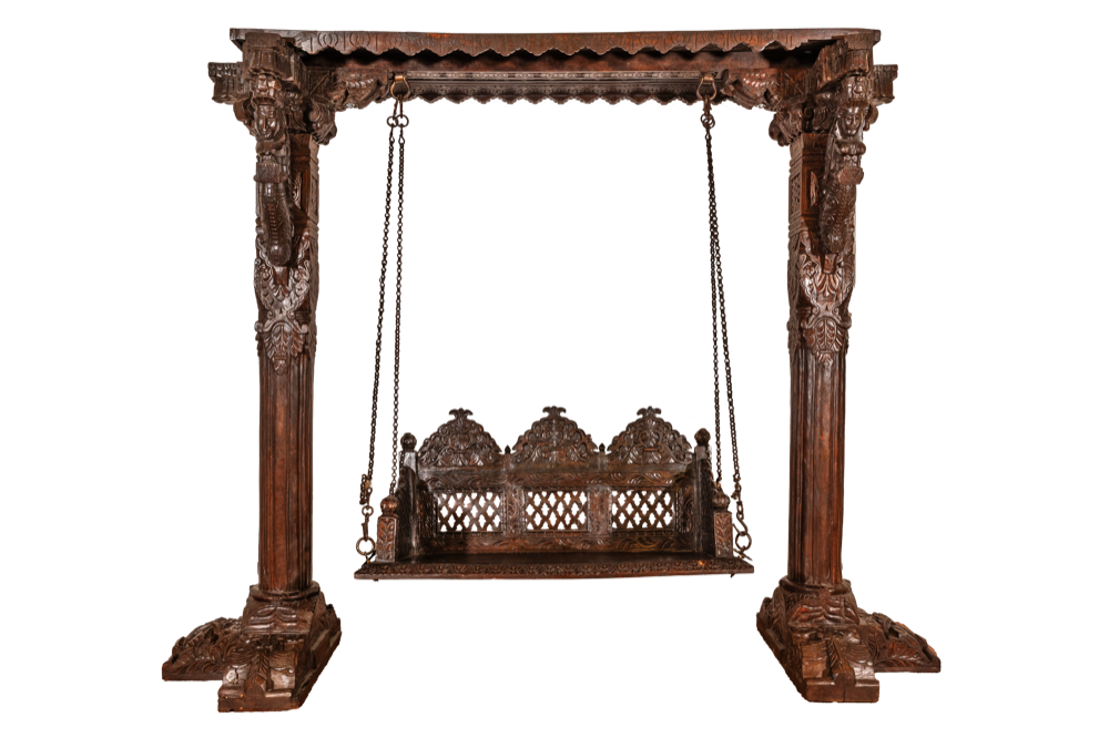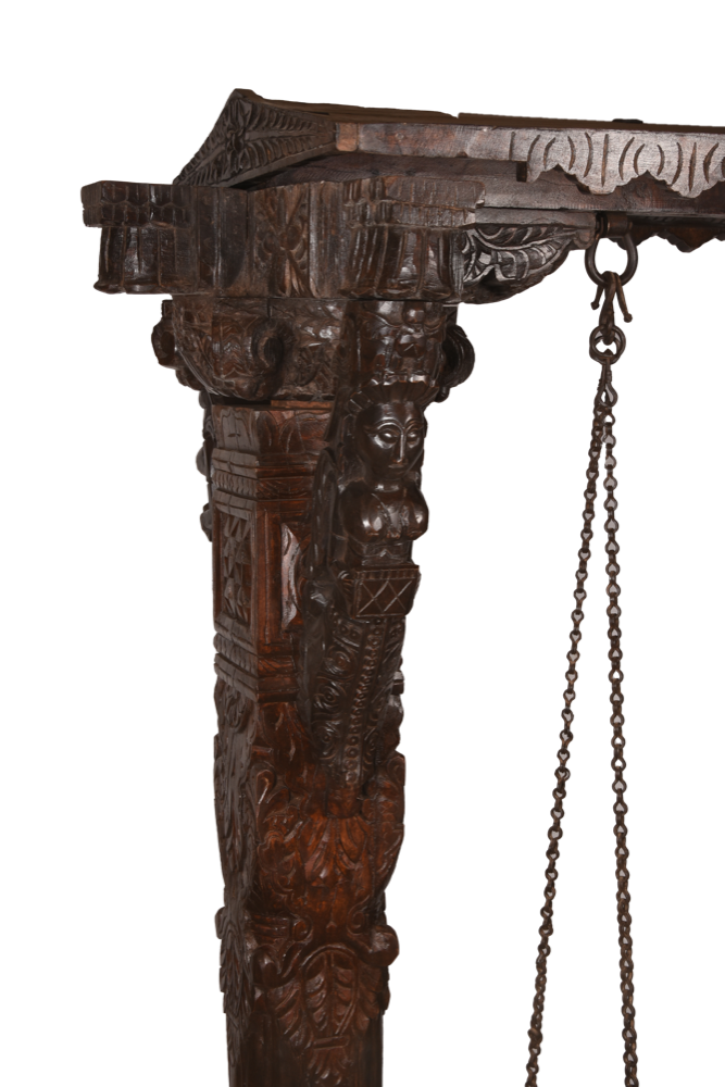 La mia forma maestosa, con colonne autentiche e staffe, ricorda gli ingressi delle haveli, le ricche dimore indiane. Un tempo, agli inizi del '900, mi trovavo infatti nei patio di queste case meravigliose; oggi arrivo nei vostri ambienti per tenere viva la mia tradizione, tornando ad essere il , dei vostri interni o del vostro giardino.