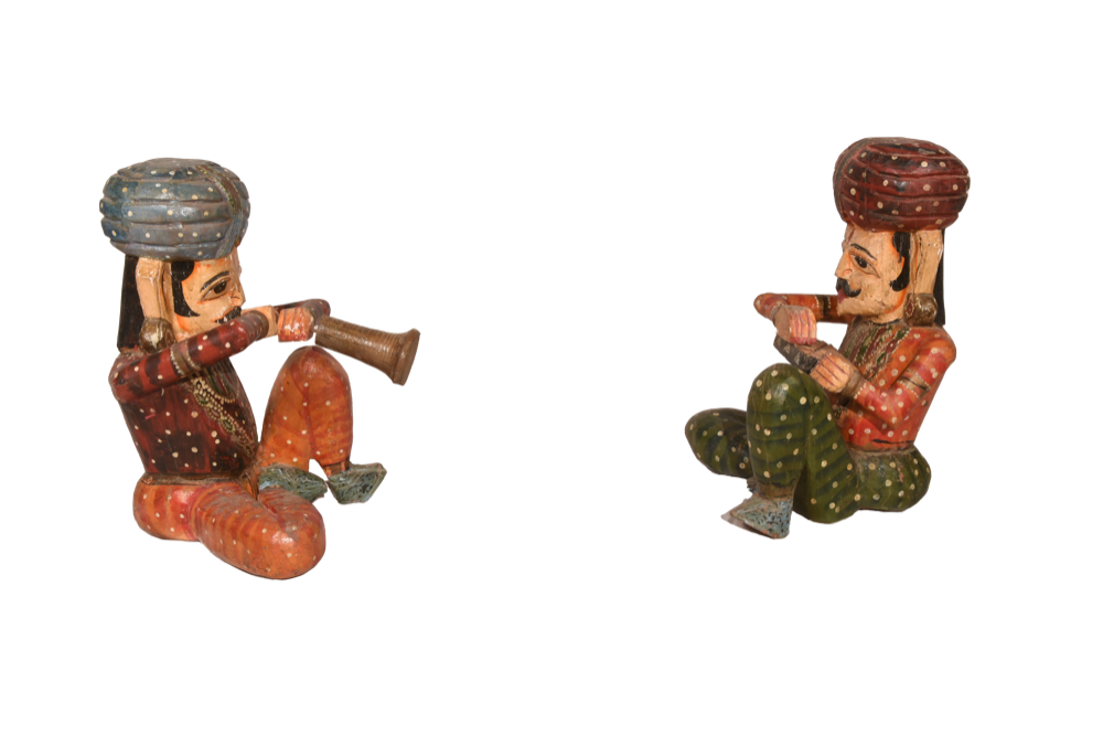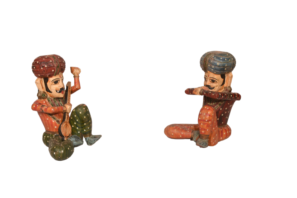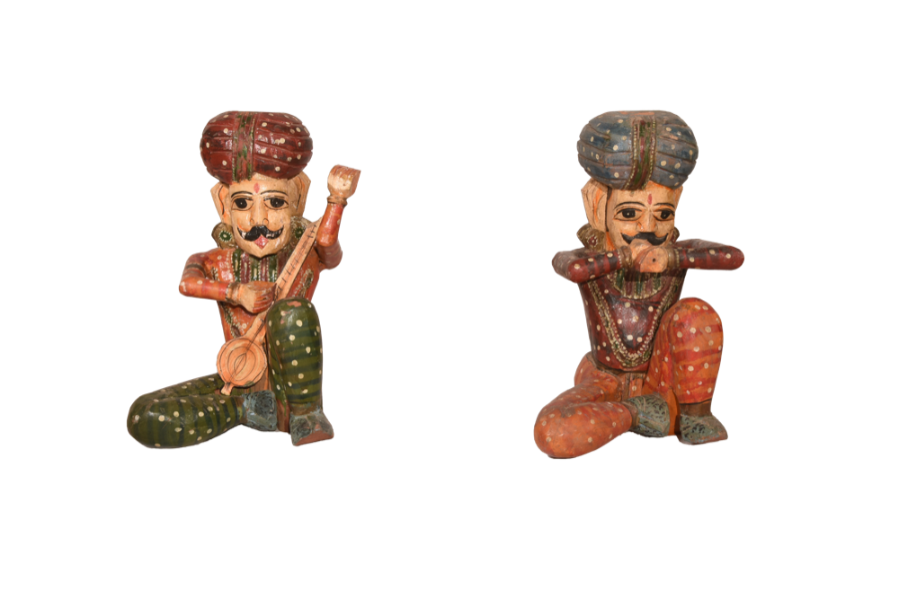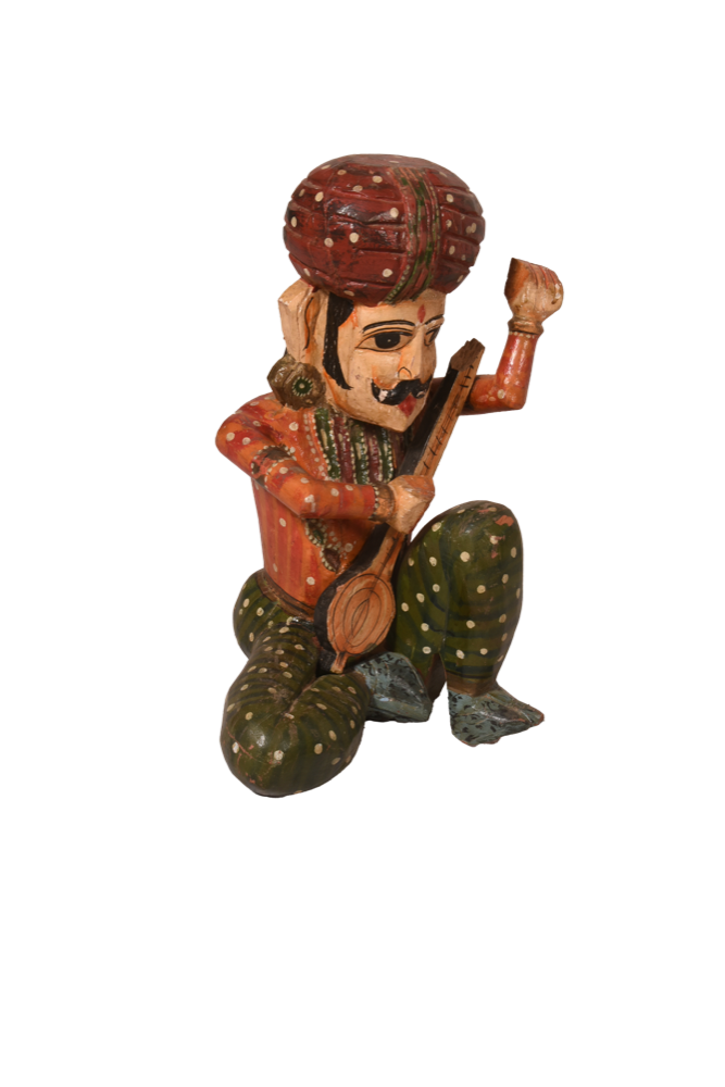 Scultura musicista in legno indiano dipinto a mano #GA19