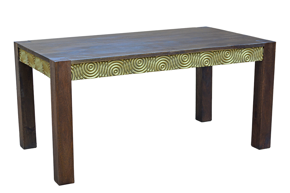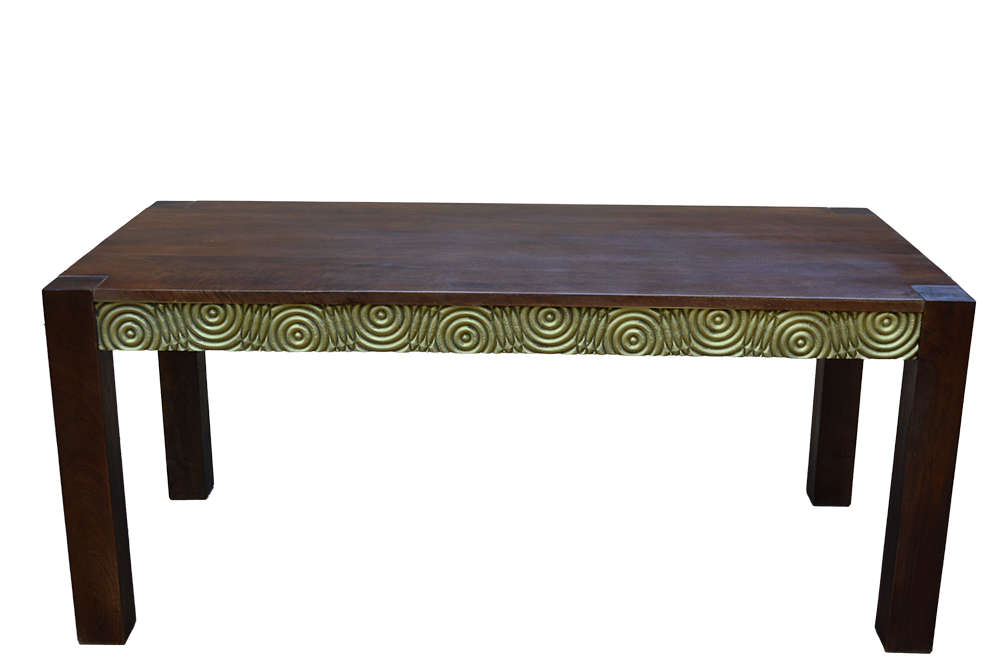Tavolo in legno di sheesham con bordi cerchi dorati #3396IN1049