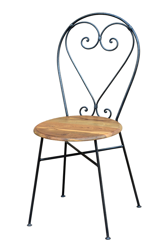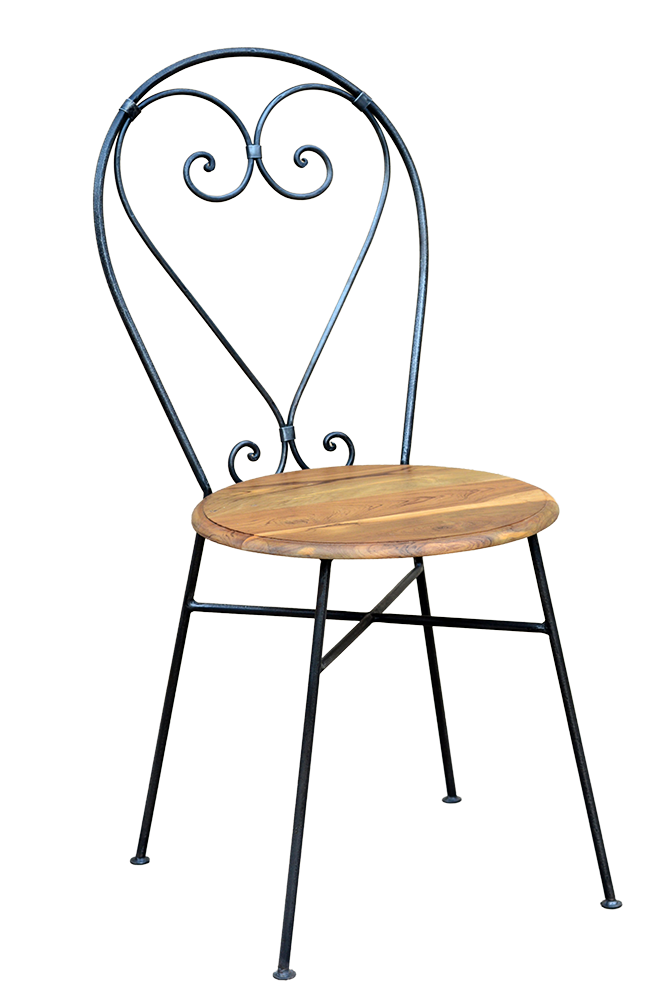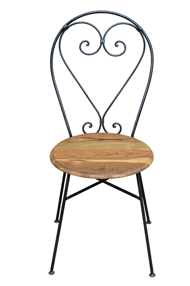 Sedia in ferro battuto con seduta in legno recuperato di teak #3421IN200