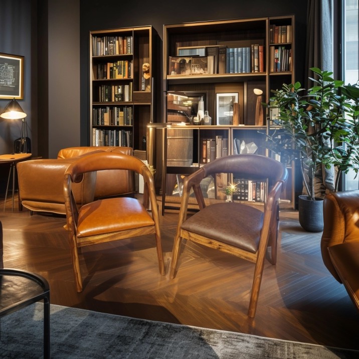 Sedia in legno di palissandro indiano e pelle #3442IN349 -19%
