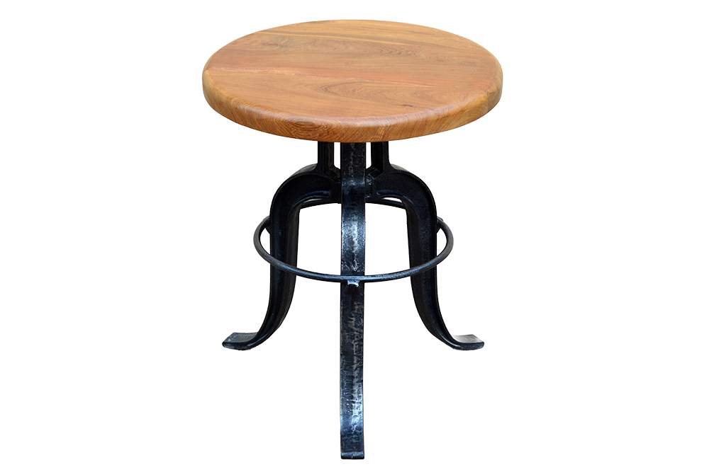 Sgabello /Tavolo da salotto bar in ferro con seduta ad alzata regolabile in legno recuperato di teak #3423IN290
