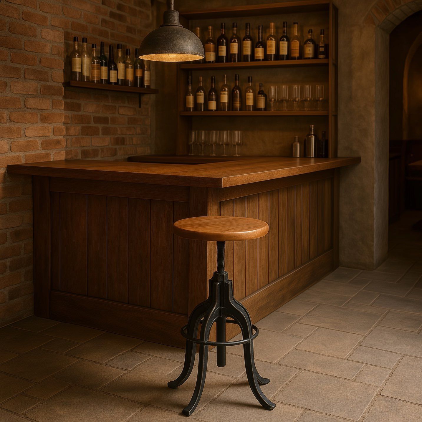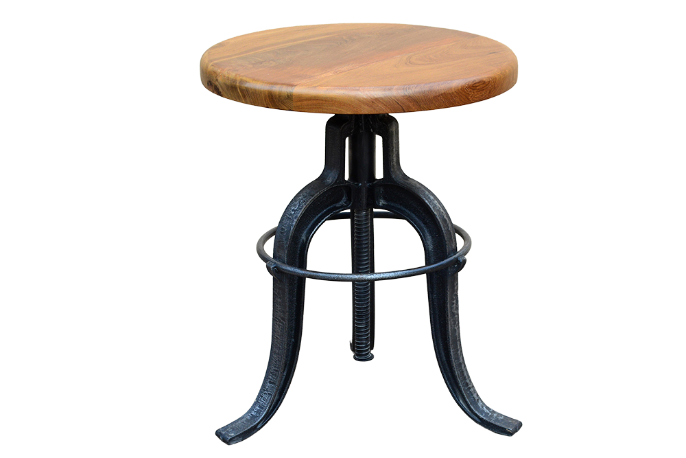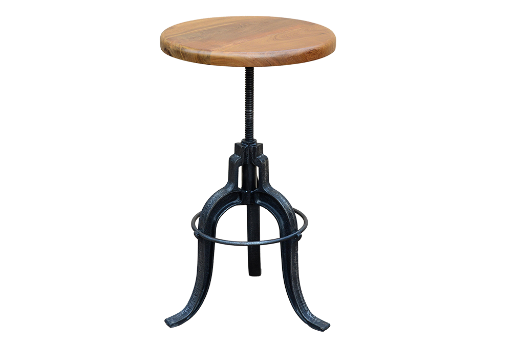 Sgabello /Tavolo da salotto bar in ferro con seduta ad alzata regolabile in legno recuperato di teak #3423IN290 -19%