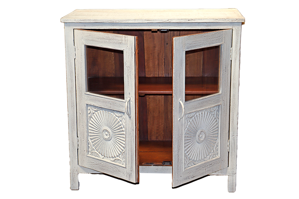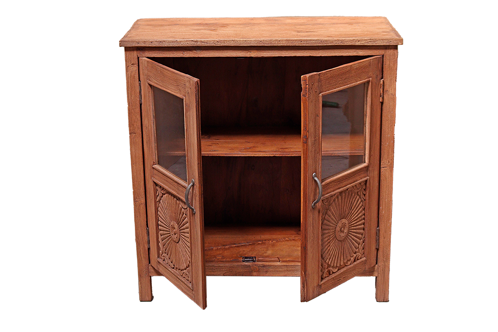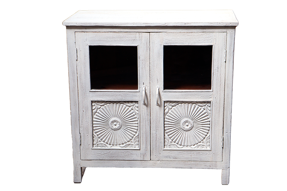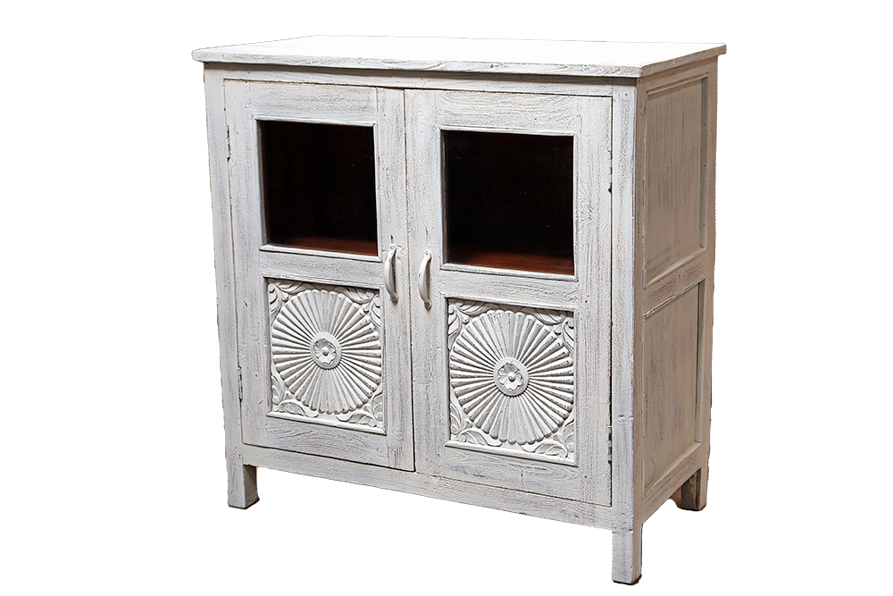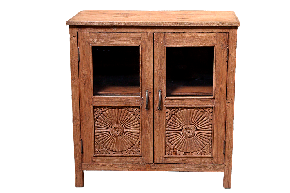 Credenza con 2 ante superiori vetro ed inferiori intagliate in legno di mango #3288IN1190