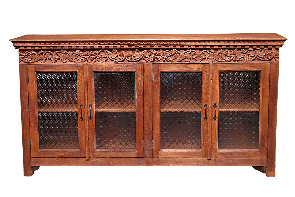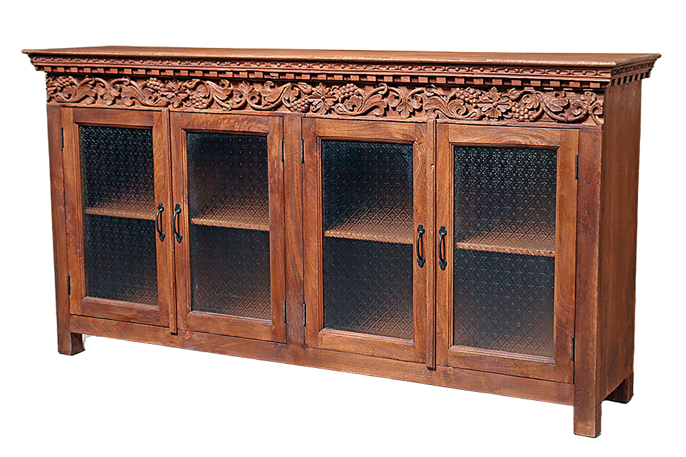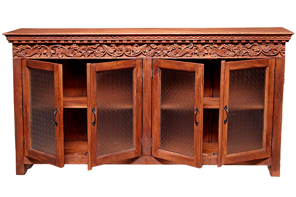 Buffet 4 ante in vetro intagliate in legno di mango #3298IN2590