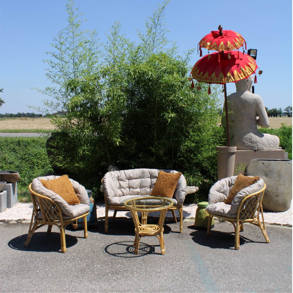 Il Set BAHAMA è realizzato a mano in rattan naturale.