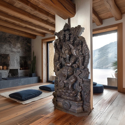 Io sono il dio Ganesha, simbolo di saggezza e dell'acume. Non mi comprendi, non è vero? Un complesso intreccio di simbologia, storia e arte. Non farti spaventare dalla mia testa di elefante, io sarò colui che rimuoverà gli ostacoli dal tuo cammino per intraprendere il tuo viaggio alla ricerca della felicità. Soffermati sulla raffinatezza con cui, all'inizio del novecento, un unico tronco di teak è stato intagliato da un abile artigiano indiano per darmi vita con la precisione delle mie forme. Dagli antichi palazzi dei marajat e i grandi templi, arriverò nella tua dimora per proteggere te e i tuoi cari, e potrai dire di avere dal tuo lato il dio del Bene.
