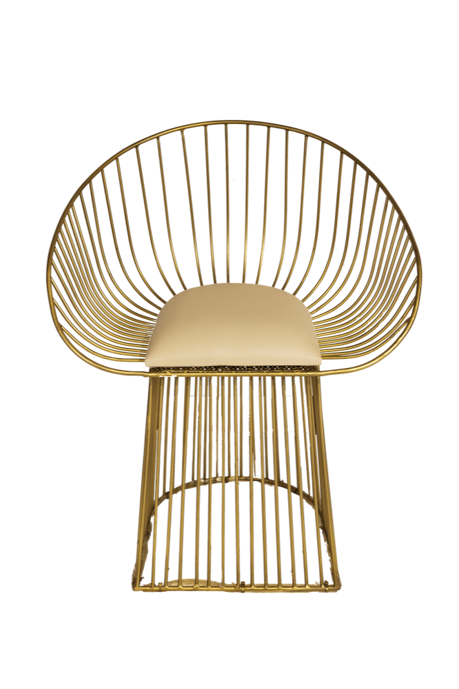 Poltrona indiana "mod. Ventaglio" in ferro con cuscino di seduta in pelle eco sostenibile #3449IN390