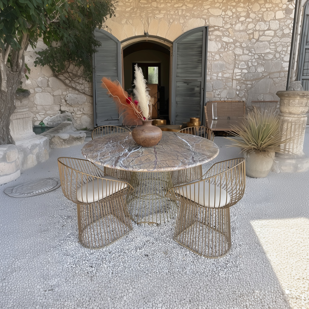 Sono una poltrona estremamente solida, ma elegante al tempo stesso, come la terra dell'Uttar Pradesh da cui provengo. Gioco con il tuo sguardo, con le mie leggerezze, mi vedi e non mi vedi. Non importa se mi desidererai con te all'interno della tua sala da pranzo o per dare un design orientale al tuo giardino o portico; io sarò sempre aperta come un ventaglio; portami a casa tua per accoglierti nella mia seduta e avvolgerti in un abbraccio con il mio prezioso ferro borchiato a mano.