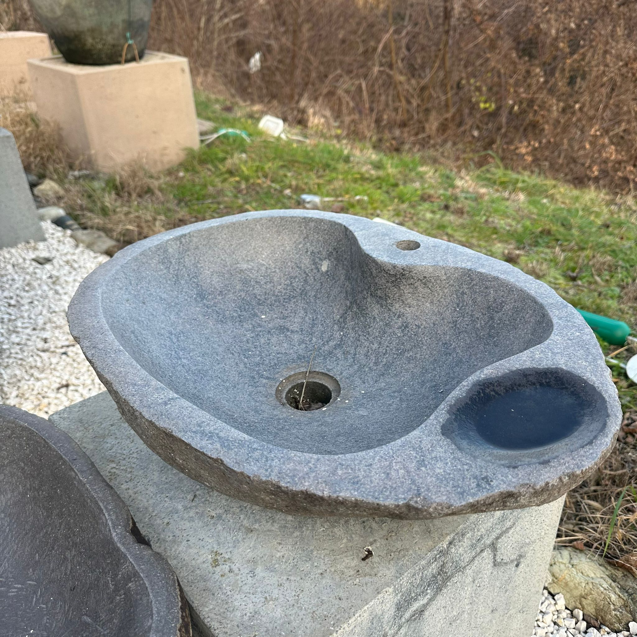 Lavandino in pietra di fiume con foro per rubinetto e porta sapone # 13