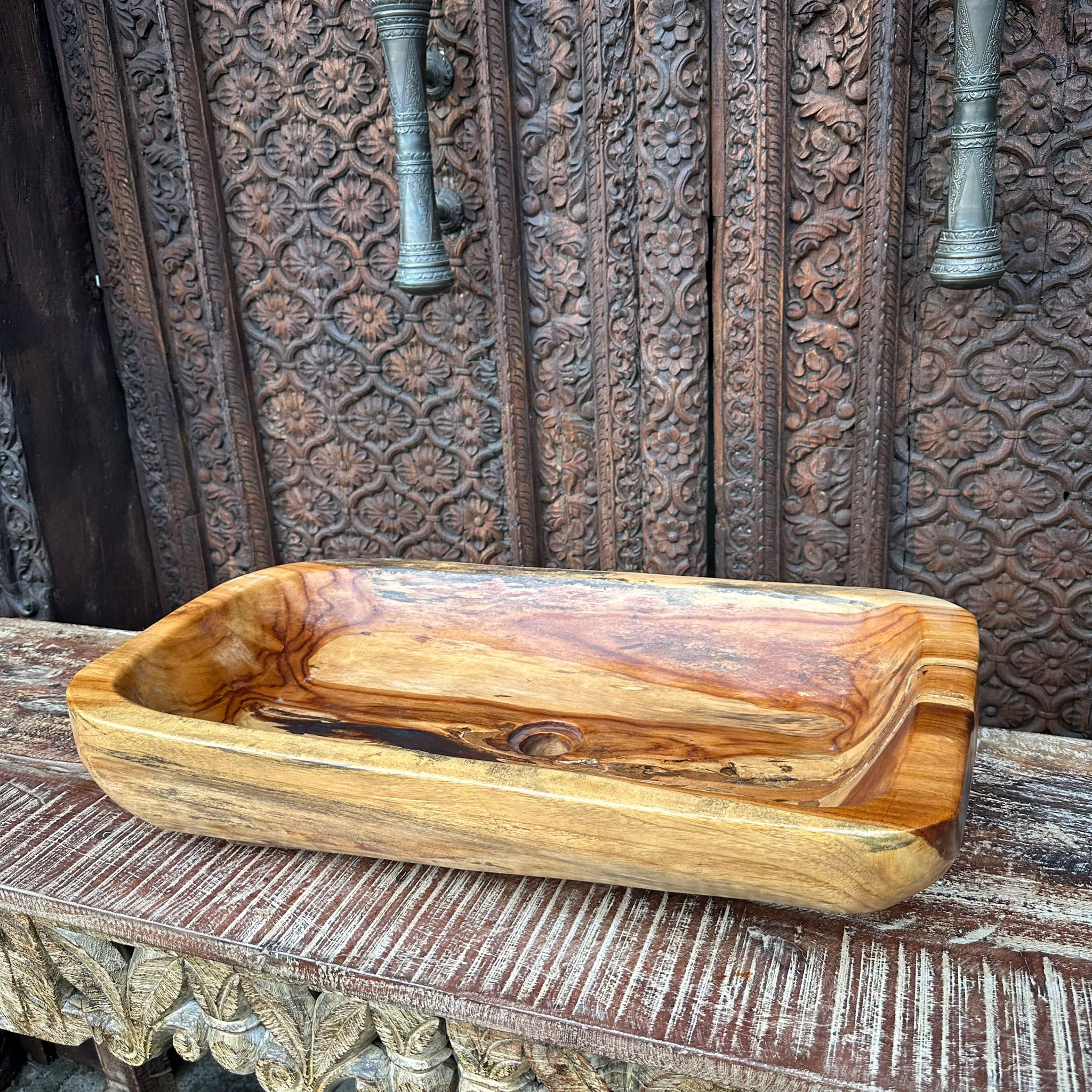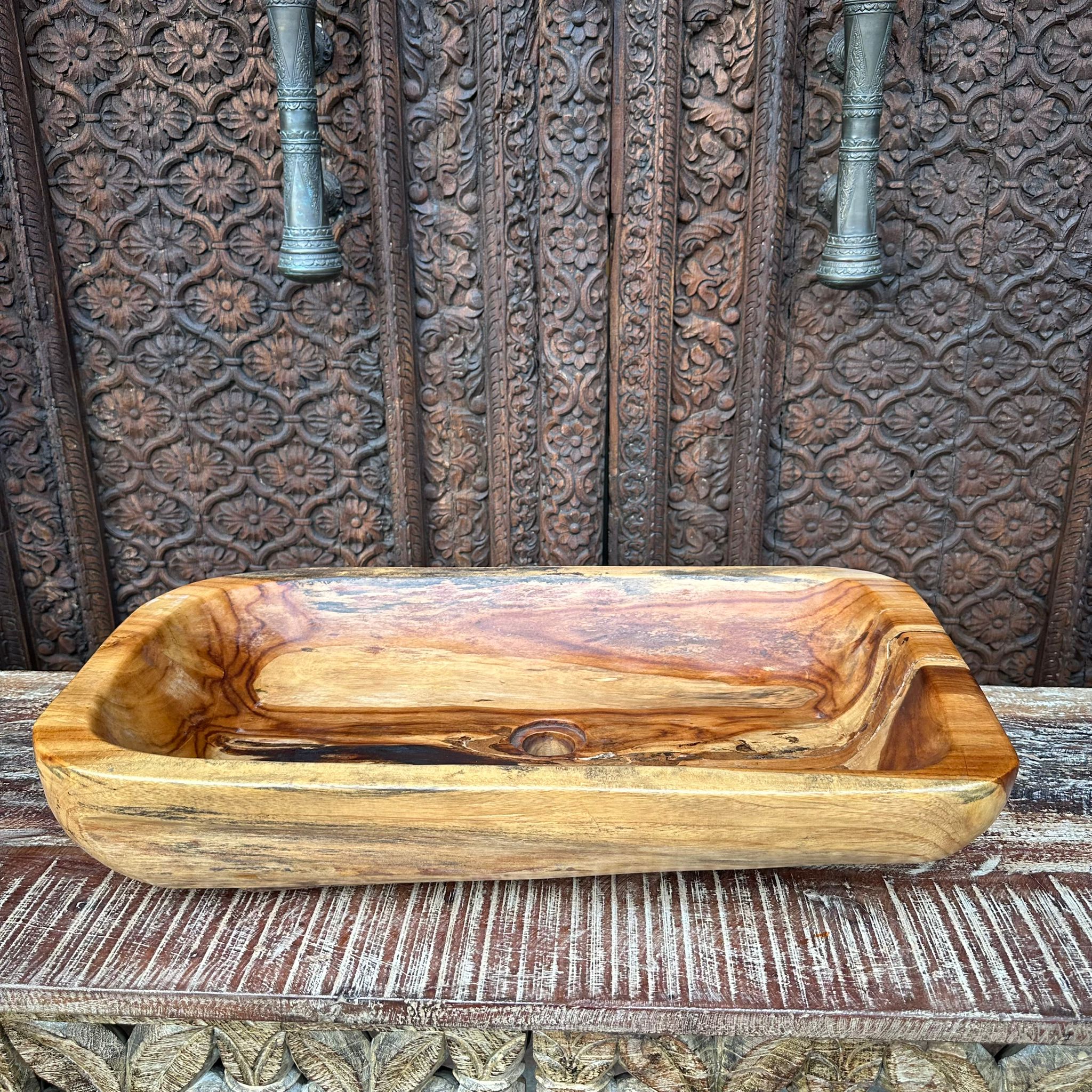 Provenienza: Isola di Bali, Indonesia Dimensioni: lunghezza 340 cm x la profondità cambia poichè è una radice: il top ha una profondità in alcuni punti di 77 / 90 / max 108 cm x altezza 80 cm Materiali: Legno massello di suar, ricavato da un’unica sezione di tronco e radice Lavorazioni: Taglio e scultura manuale che seguono le forme naturali del legno, levigatura e finitura a cera per esaltare le venature e la profondità cromatica. Struttura: Sezione unica scolpito nella radice, con gambe integrate nella stessa massa lignea, garantendo solidità e armonia visiva. Autenticità: Pezzo unico, realizzato artigianalmente da maestri indonesiani che lavorano nel rispetto della natura e della materia, senza riproduzioni né copie. Perché sceglierlo? 1. È un’opera naturale irripetibile, nata da un solo blocco di legno di suar. 2. Le sue forme organiche e scultoree rendono ogni ambiente unico e sofisticato. 3. Rappresenta un perfetto equilibrio tra design, materia e natura. 4. Trasmette energia, calore e autenticità, diventando il fulcro visivo e emozionale della stanza. Questo straordinario tavolo indonesiano in legno di suar è una vera scultura della natura. Nato da un’unica sezione di radice, conserva la forza primordiale dell’albero da cui proviene: le venature fluiscono come onde, creando giochi di luce e profondità che sembrano in movimento. La superficie, levigata con cura artigianale, racconta una storia di equilibrio e di armonia tra uomo e natura. Ogni curva, ogni irregolarità, ogni tonalità dorata è un segno della sua unicità. Imponente ma elegante, questo tavolo è pensato per chi desidera portare in casa un elemento vivo, capace di trasformare lo spazio in un luogo di incontro, energia e bellezza autentica. Importato da Colori dal Mondo s.r.l.