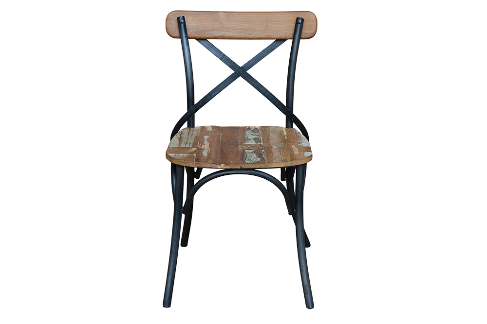 Sedia in ferro con seduta e schienale in legno di teak recuperato mod. Cross #3422IN229 -18%