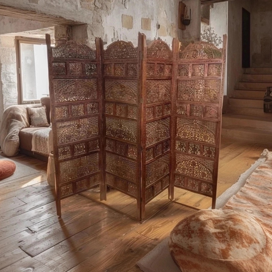 Paravento indiano in legno di mango intagliato formato da 4 ante da cm 50 l'una #3361IN1290 -18%