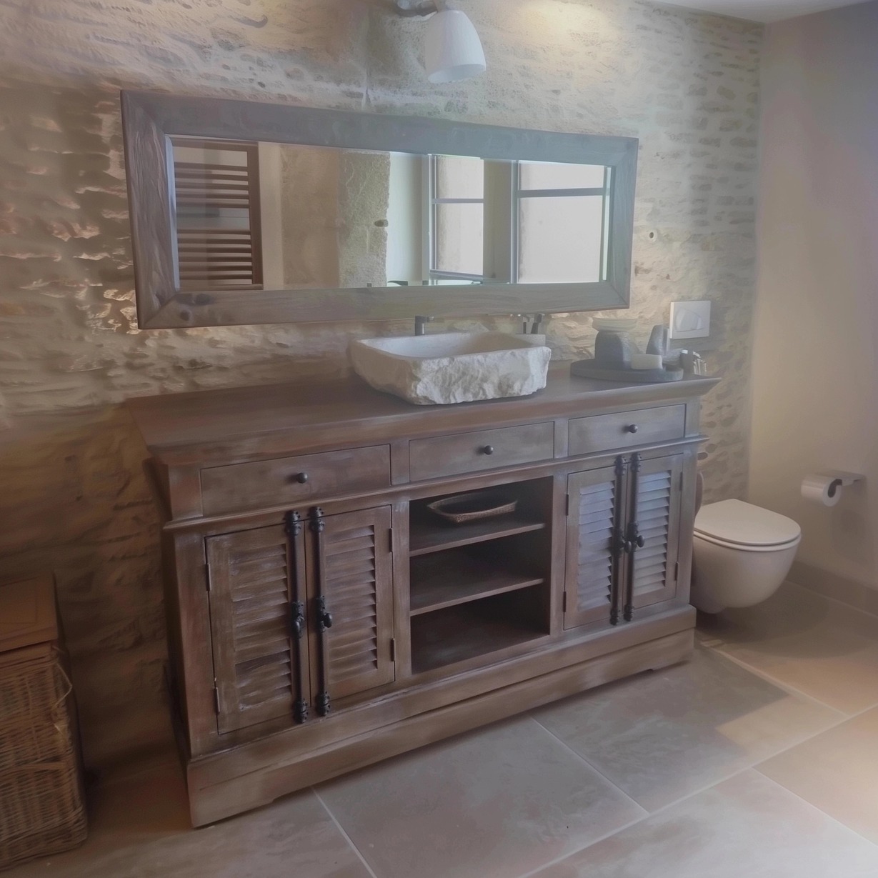 Credenza indiana in legno di mango realizzato con finestre a persiana e inserti in ferro #1507IN1690 -18%