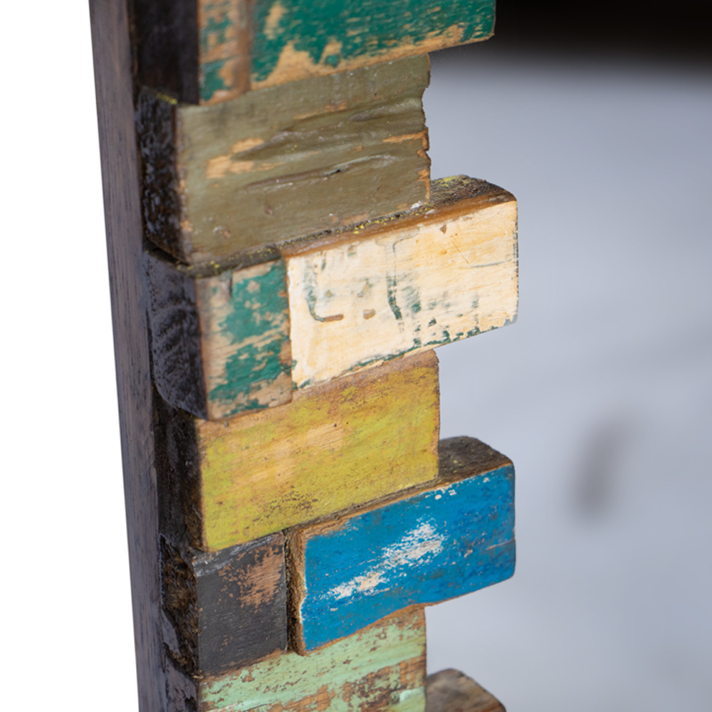 Specchio con cornice lavorazione a mosaico in legno di teak recuperato dalle vecchie barche cm 55 x cm 75