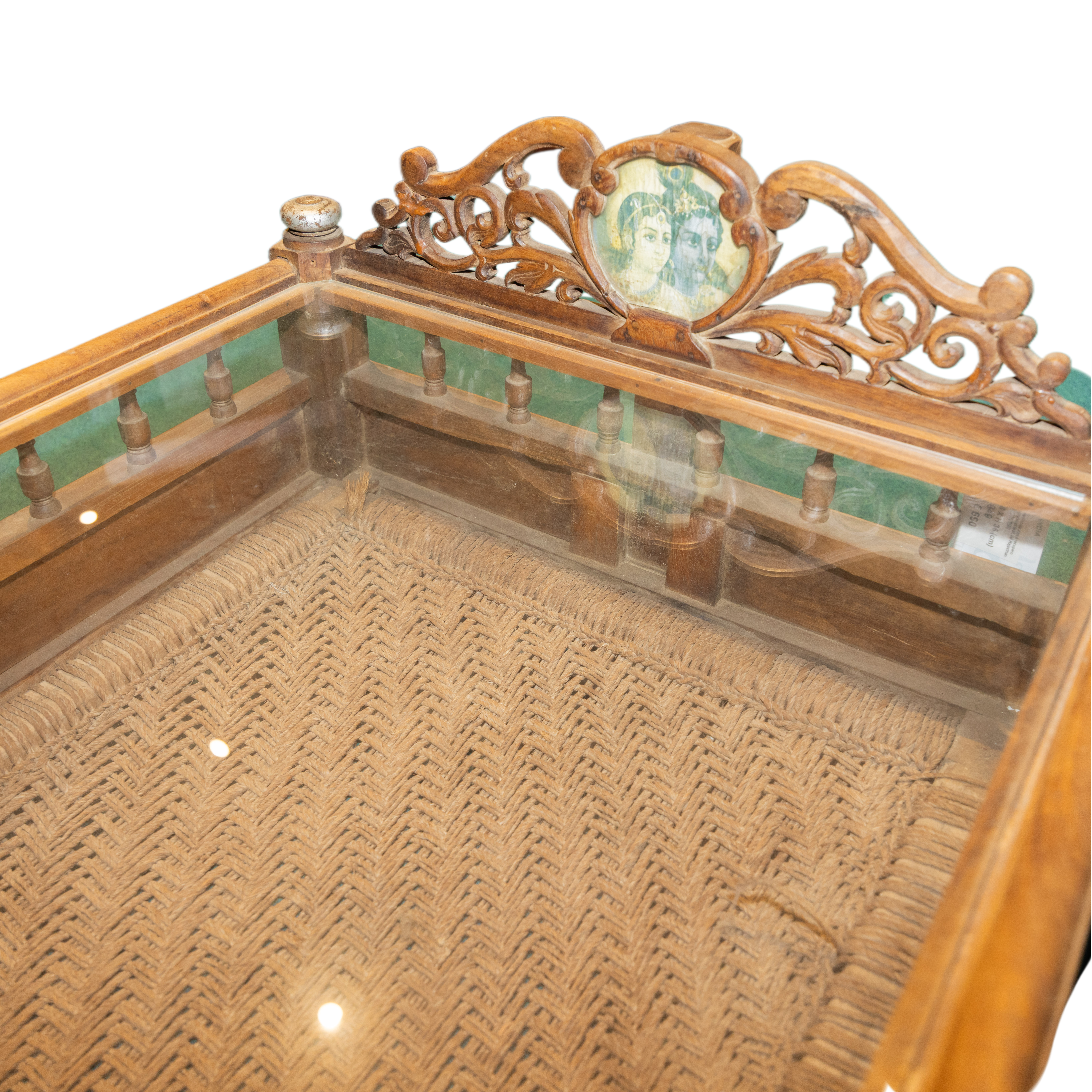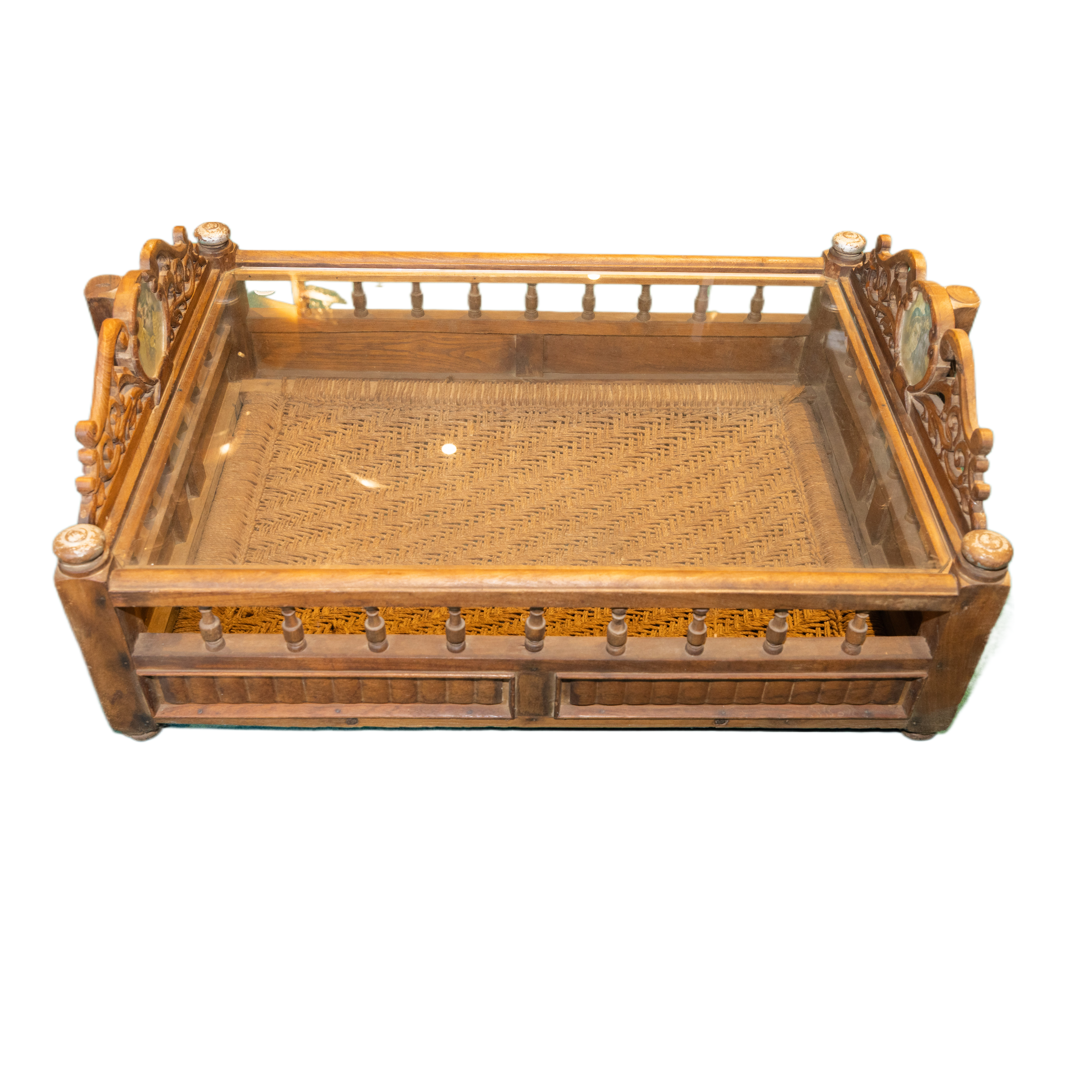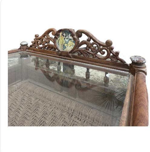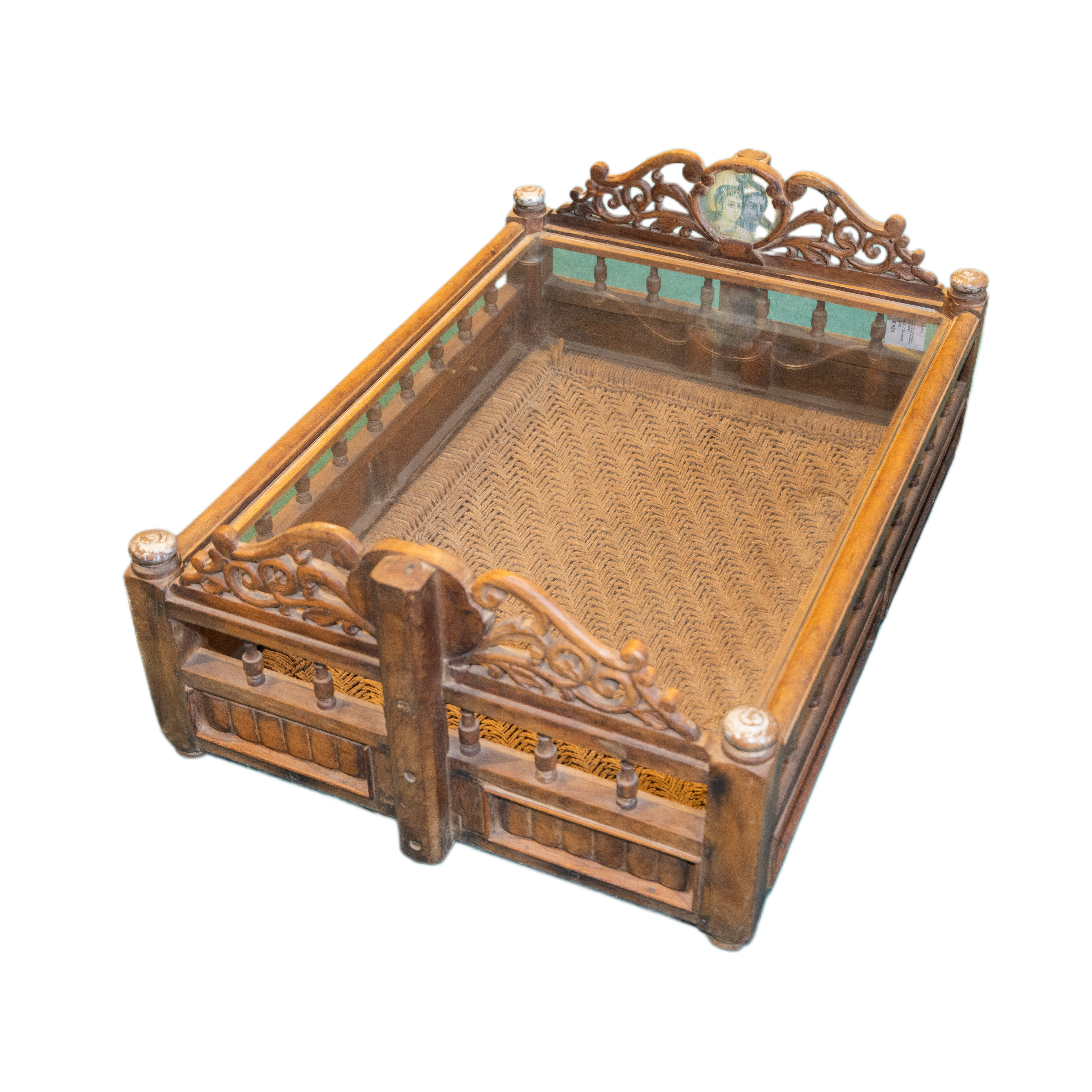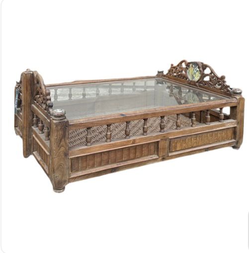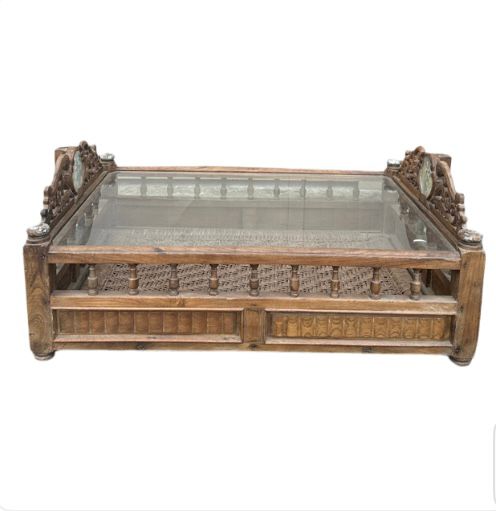 Tavolo da salotto indiano realizzato con il recupero di una culla del Rajasthan in legno di teak #1829IN890