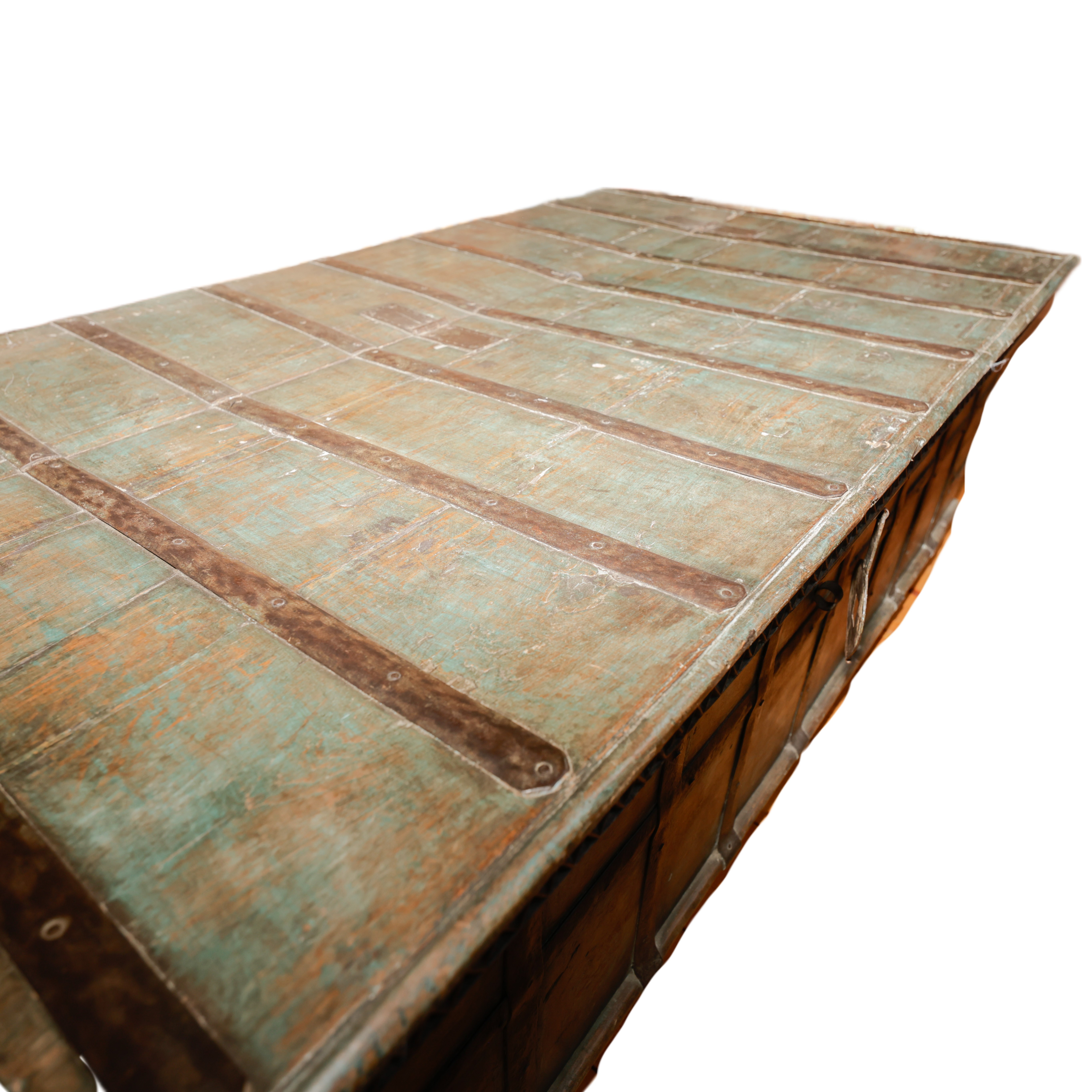 Baule forziere antico indiano in legno di teak con inserti in ferro #1489IN1390 -16%