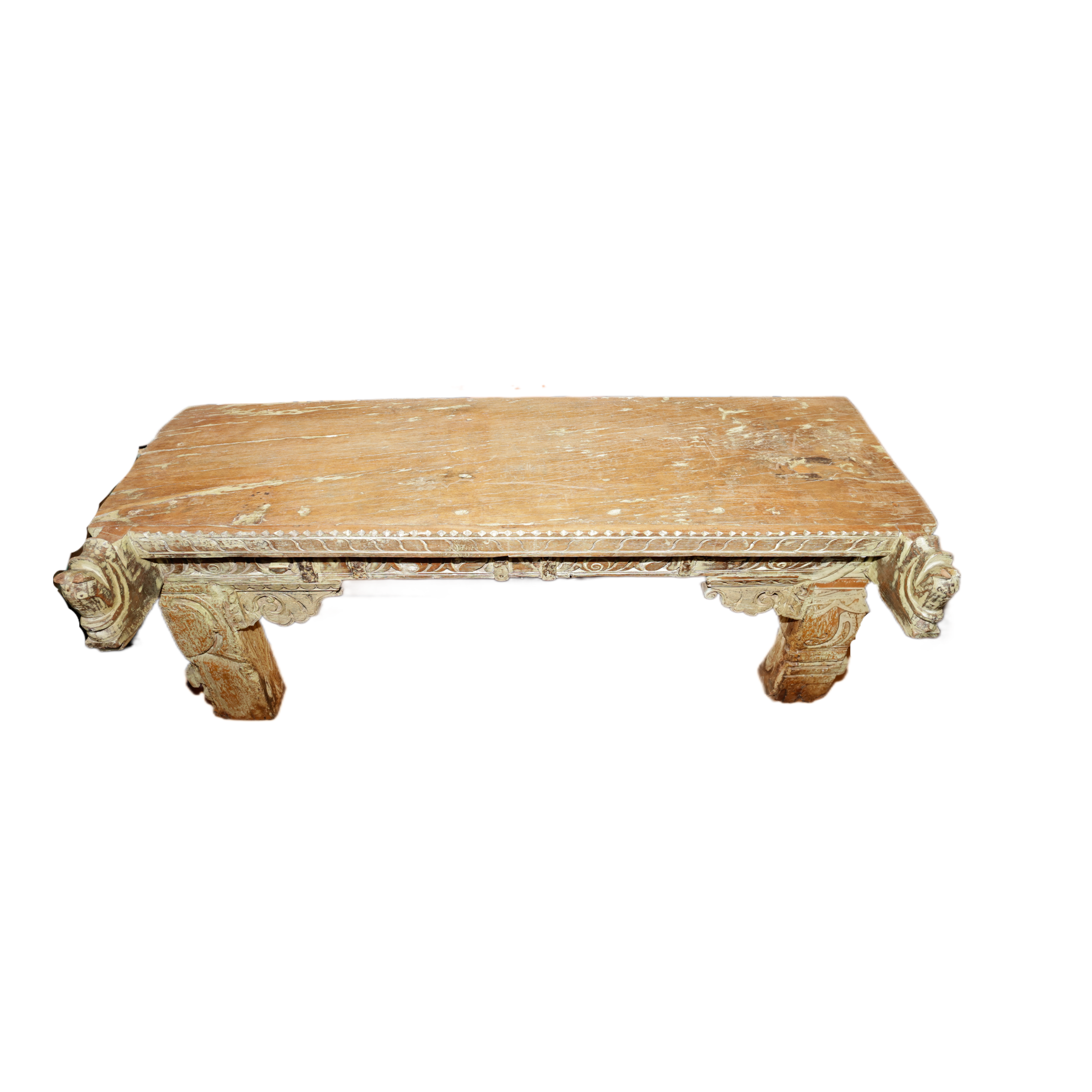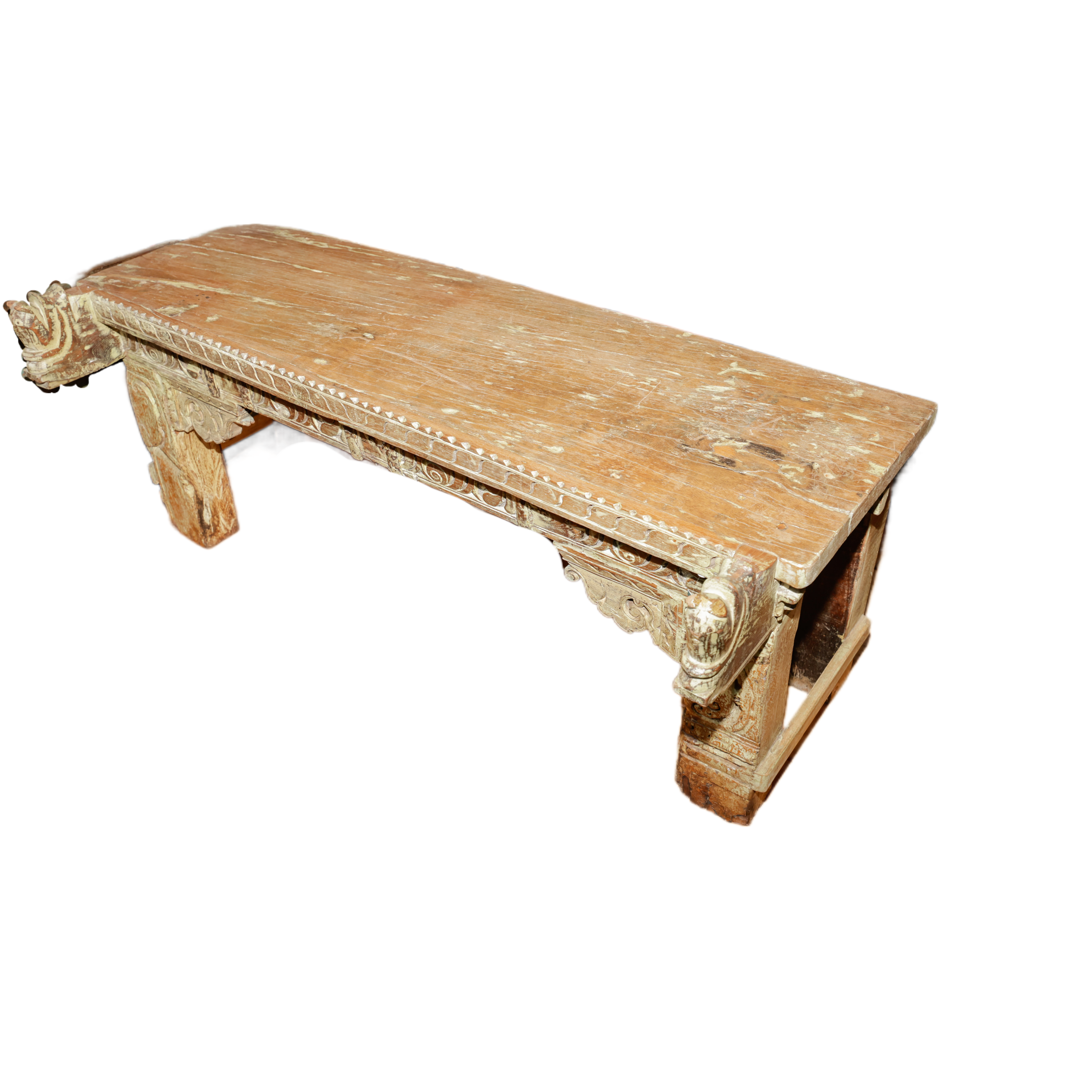 Tavolino indiano in legno di teak con frontale realizzato con il recupero delle cornici di vecchi palazzi #1660IN790