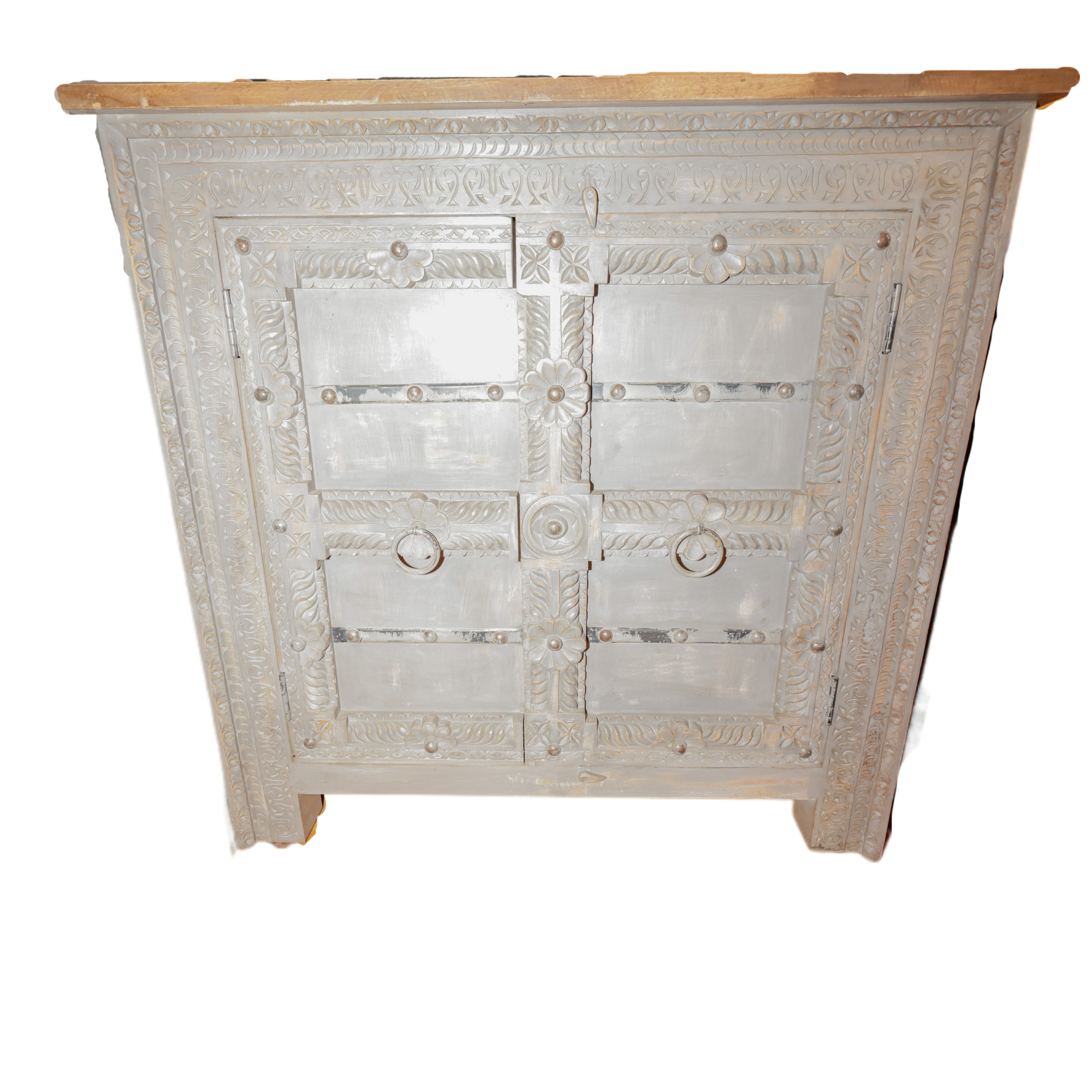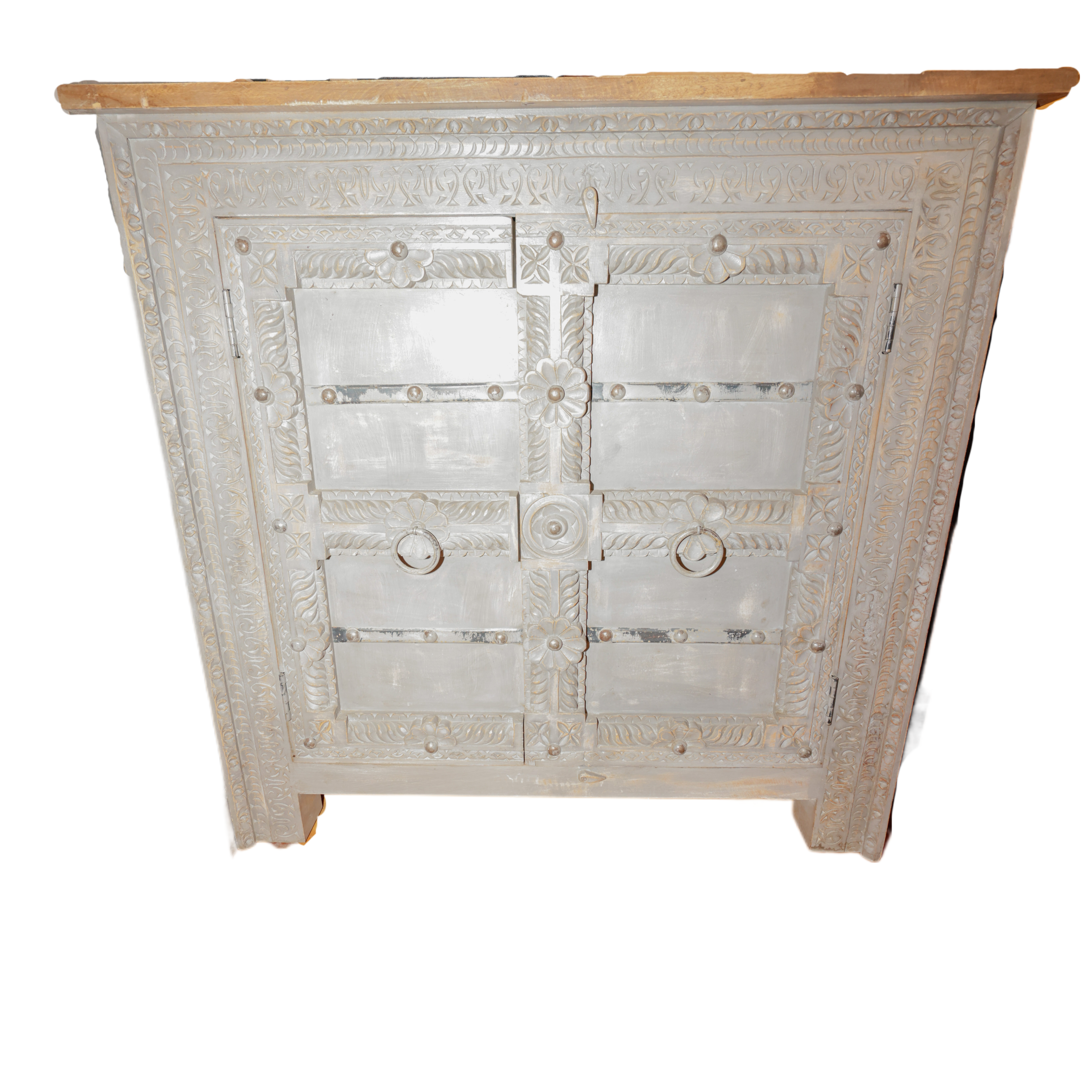 Credenza indiana in legno di palissandro con 2 ante "mod. JAIPUR" finitura grigia con top marrone rossiccio #1474IN1190