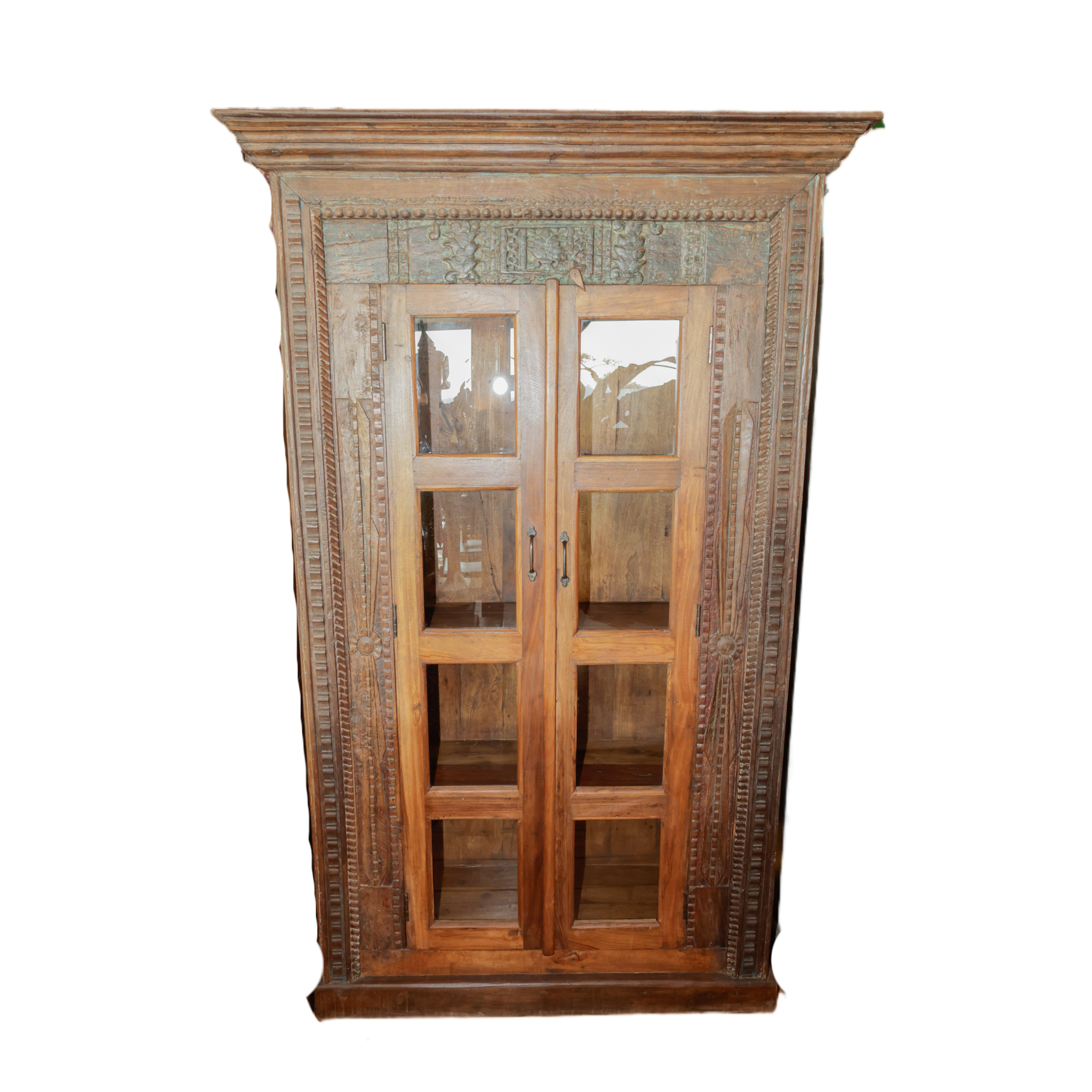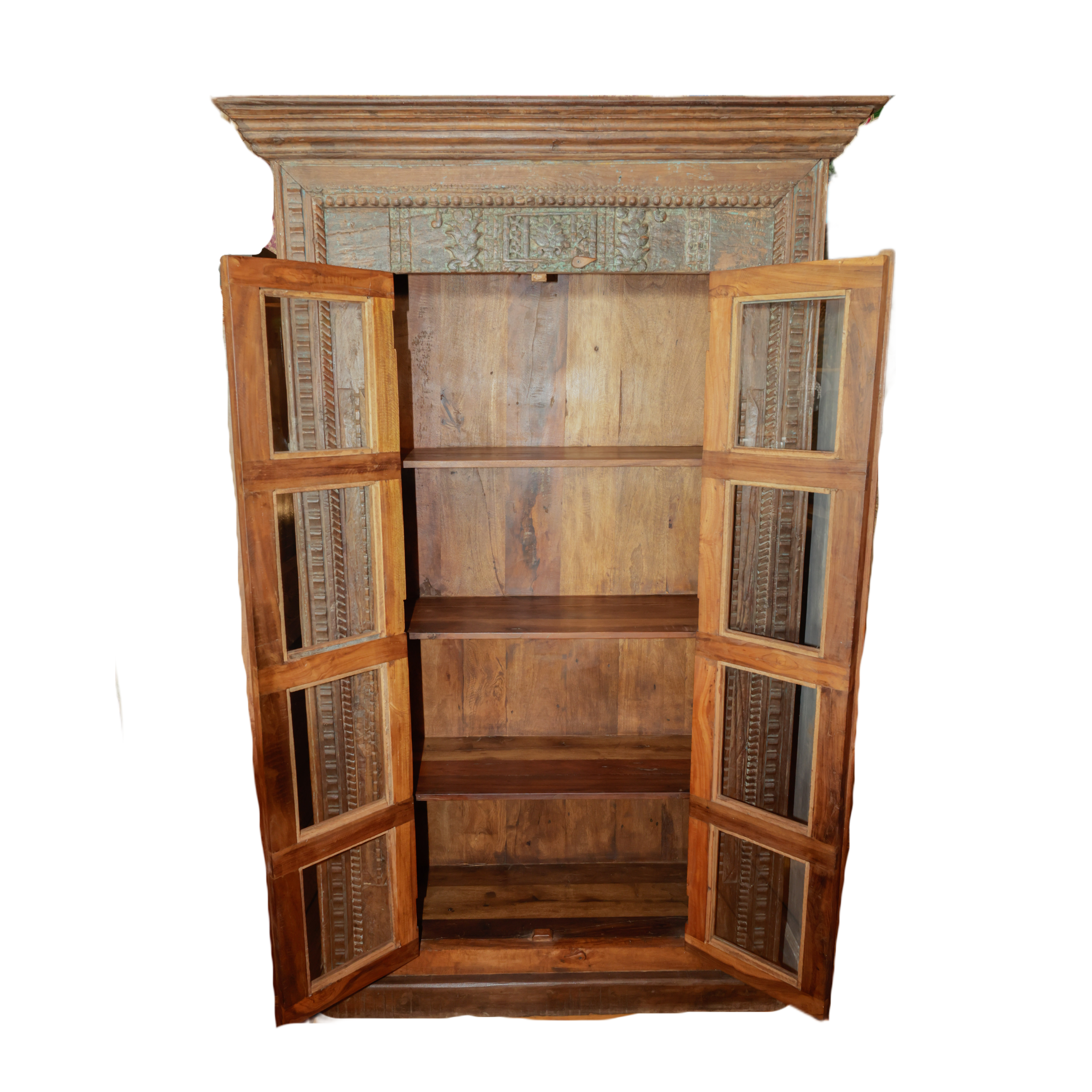 Vetrina indiana in legno di teak recuperato da antiche cornici e ante da finestre di palazzi storici del Gujarat #3353IN3390