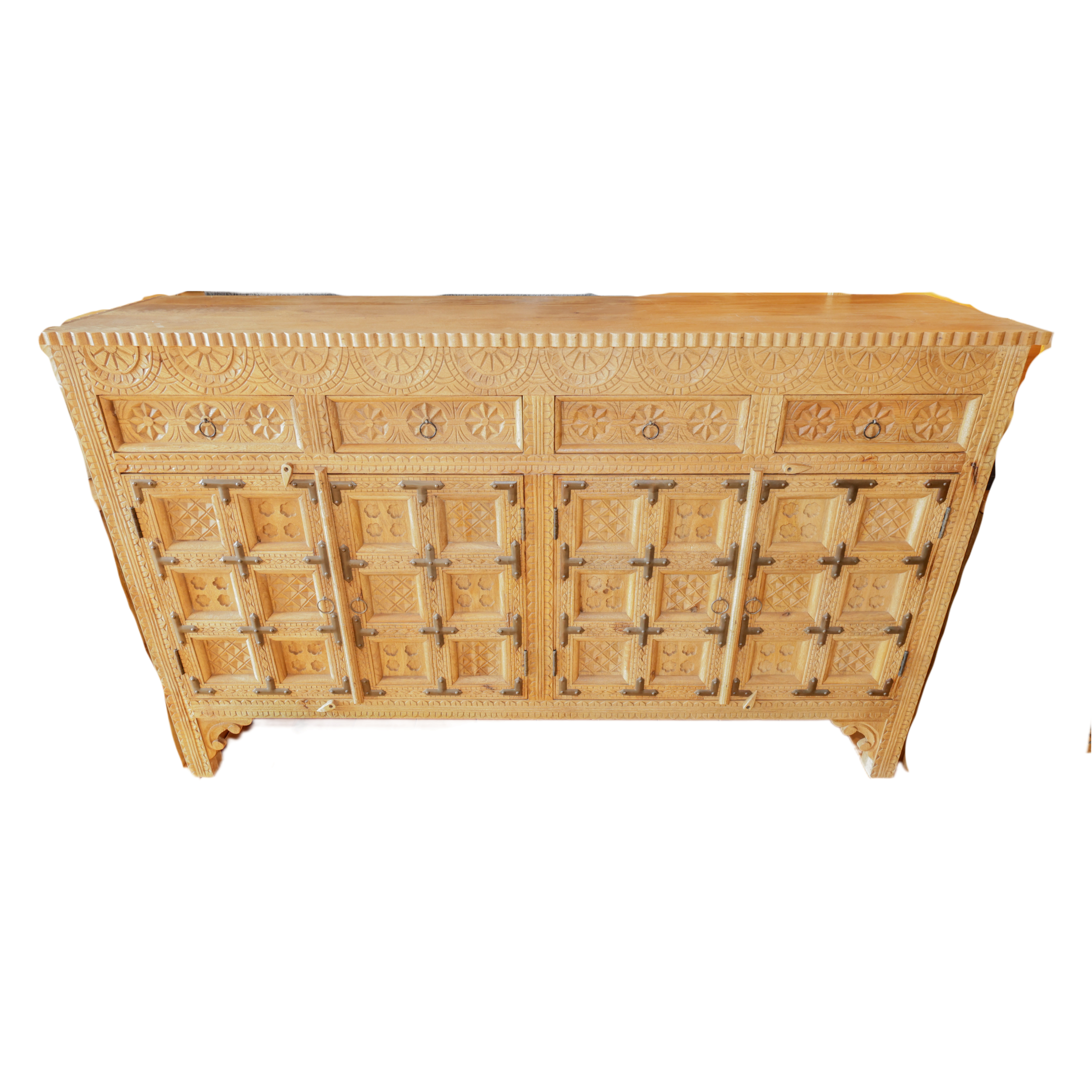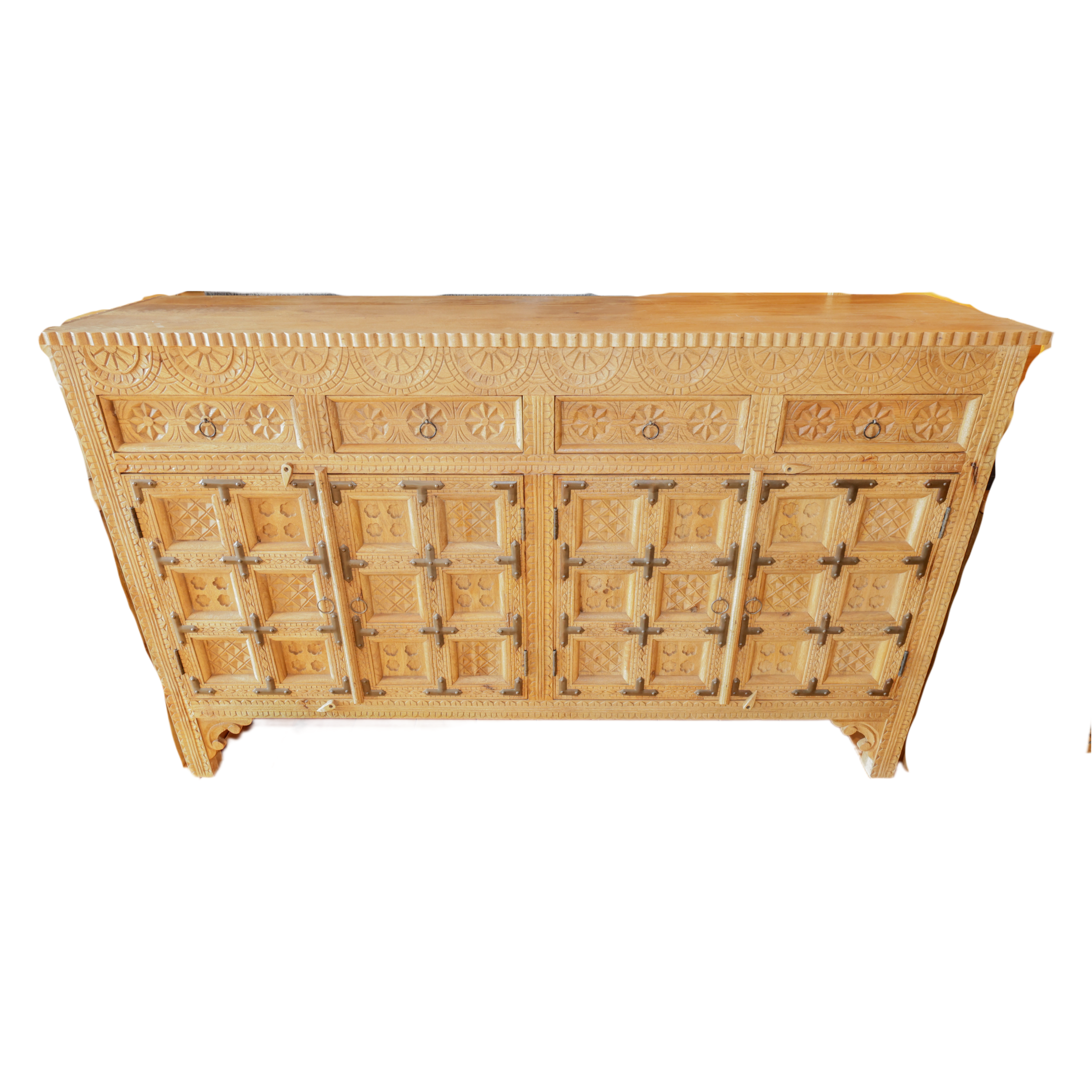 Credenza indiana in legno di mango con 4 cassetti e 4 ante con intagli tradizionali dei Damchiya (Bauli Nuziali) #3306IN2290 -18%